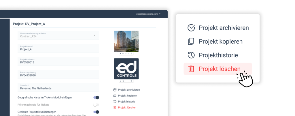 Wir führen zwei neue Funktionen ein, die Ihnen mehr Kontrolle über Ihre Projekte und Daten geben. Erstens können Sie als Administrator jetzt inaktive Projekte löschen, deren Daten nicht mehr benötigt werden. Dies sorgt für eine aufgeräumte Arbeitsumgebung und verhindert, dass alte Daten unnötig zugänglich bleiben. Diese Option ist nur für Vertragsadministratoren verfügbar. Dies hält Ihr Dashboard übersichtlich, verbessert die Datensicherheit und ermöglicht es Ihnen, sich effizienter auf aktive Projekte zu konzentrieren.